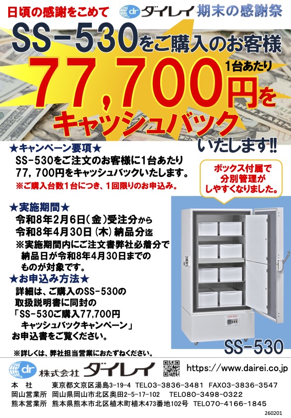 キャンペーン期間中SS-530ご購入のお客様に、1台当たり¥77,700-をキャッシュバックいたします。